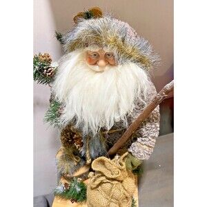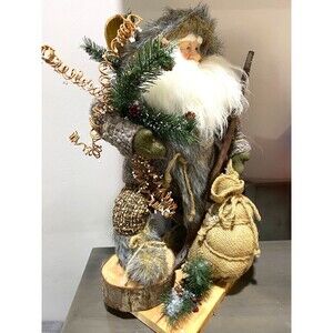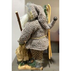 NORDIC SANTA CLAUS Figurine w/Skis Rustic Nomad Outdoorsman Large Holiday Decor