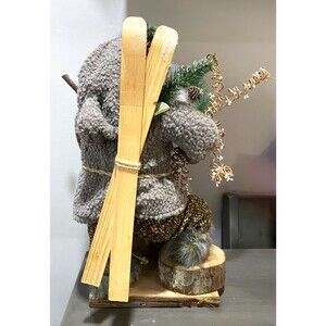 NORDIC SANTA CLAUS Figurine w/Skis Rustic Country Outdoorsman Holiday Xmas Decor