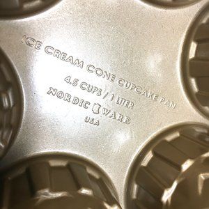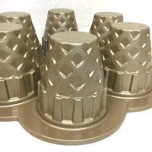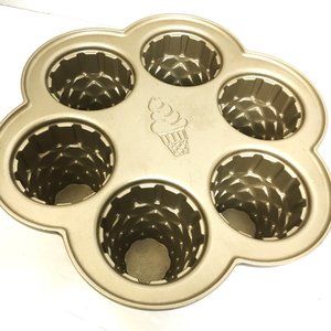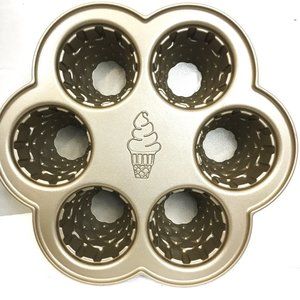 Nordic Ware Retired Gold Color Ice Cream Cone 6 Cupcake Baking Pan