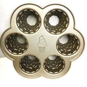 NORDIC WARE Retired Gold Color Ice Cream Cone 6 Cupcake Baking Pan