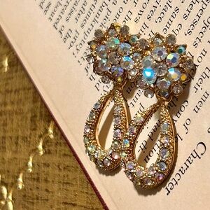 NORDSTROM 70’s Inspired Vintage Style Sparkly Gold Tone With Iridescent Rhinestones Dangle Earrings Brand New . These brass base, gold tone earrings feature a dangle design with a pierced post back. They feature stunning rhinestones throughout the design. Well made & high end quality & boy do they really sparkle . Such pretty earrings.