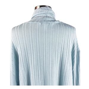 NORDSTROM ABOUND Ribbed Turtleneck Knit Sweater Lettuce Hem Long Sleeves Blue XL