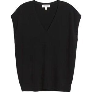 NORDSTROM BLACK Cashmere V-Neck Sweater Vest SIZE M