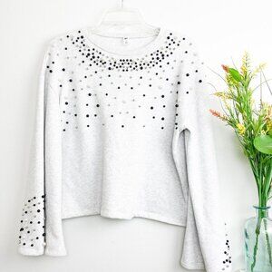 🦋 NORDSTROM BP Pearl Beaded Bell Sleeve Sweater Gray Small Casual Winter