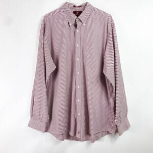 NORDSTROM Classic Red Striped Button-Down Collared Dress Shirt