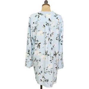 NORDSTROM Floral V-Neck Sleep Shirtdress Hi-Low Size S Light Blue Print NEW B44