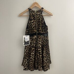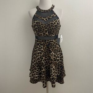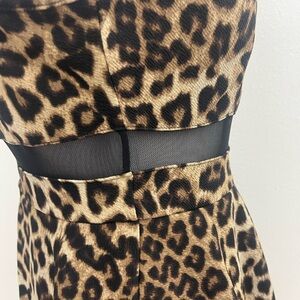 NORDSTROM LEOPARD PRINT BLACK MESH DETAIL FITTED STRECH A-LINE MINI DRESS
