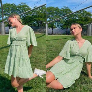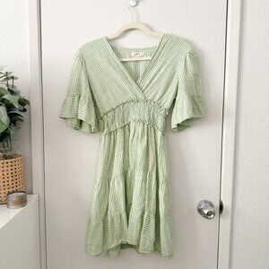 🦋 NORDSTROM MAX STUDIO Green Ruffle Tiered Stripe Dress Coquette Cottage Core