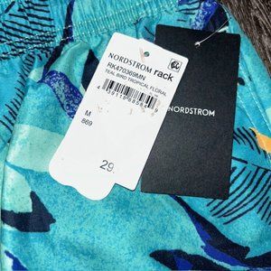 NORDSTROM Men's Tropical Print Board Shorts Size Medium M Teal Yellow Swim NWT