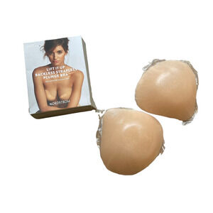 NORDSTROM Natural Lift It Up Backless Strapless Plunge Adhesive Bra Size D