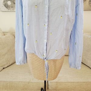 🍐 NORDSTROM 🍐 Pear Embroidered Tie Front Shirt - [Large in Blue]