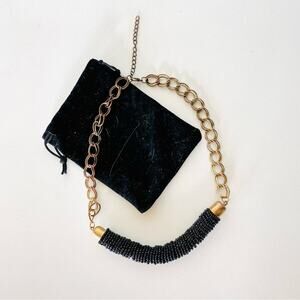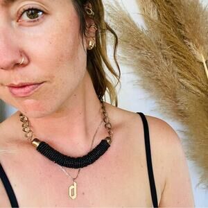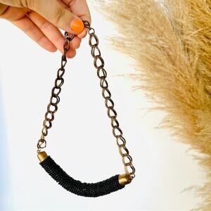 NORDSTROM REVOLVE Black Beaded Gold Brass Link Chain Bold Statement Necklace