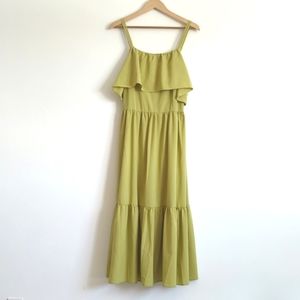 Beautiful mustard green ruffle dress. Dress is lined.Brand new with tags. Nordstrom brand one one six. Best fit size 10-12.