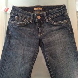 NORDSTROM SEE THRU SOUL BOOTCUT VINTAGE WASH JEANS, with cute button flaps. I bought at Nordstrom past season at semi annual event sale. Size 25 waist. Brand new with tags. Length from top to bottom hem is 36 inches, super leg lengthening denim.