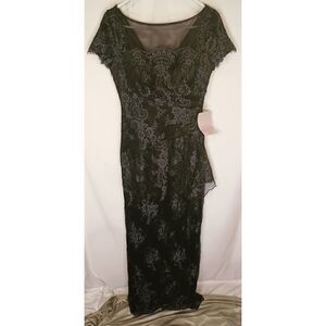 NORDSTROM SHEER LACE FORMAL GOWN EMBROIDERED BLACK FULL LENGTH J S COLLECTIONS 2