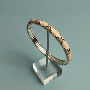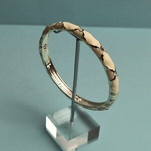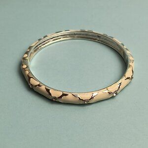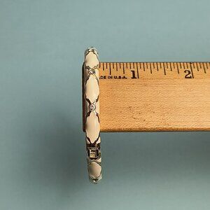 NORDSTROM Sequin Enamel Hinge Bangle Bracelet Clamper Off White S/T Rhinestone