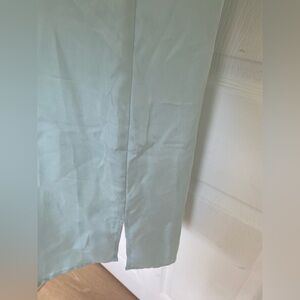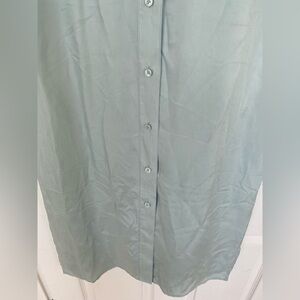 Stylish sleeveless button-up shirt dress in a soft green color. Features a chest pocket for added detail.