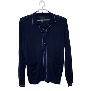 NORDSTROM Tech Smart Blue Merino Wool Button Up Sweater Collared Cardigan Sz M