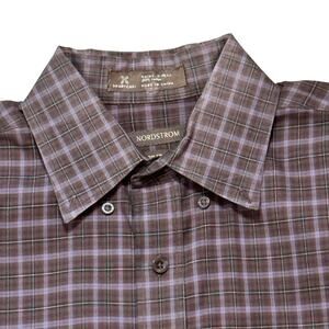 NORDSTROM Traditional Fit Men's Shirt Button-Up Check Plaid Wrinkle Free XL