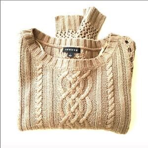 NORDSTROM Trouve Open Weave Camel Pullover Sweater Chunky Knit Boxy Boho L