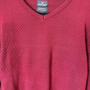 NORDSTROM XRAY Brand Textured Sweater Size Large Burgundy V Neck