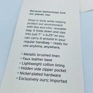 NORDTROM Silver Metallic Reusable eco-chic Tote Bag NEW NIP Faux Leather