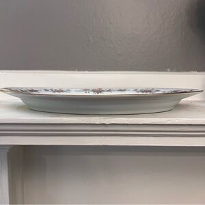 WUC 13” oval platter from NORITAKE in their Tremont pattern. Deep red flower border on white background with gold trim at edge.