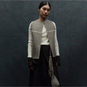 NORLHA 100% Yak Handmade Felt Vest in Natural Gray and White Medium Zero Waste. Looks as if it has never been worn before!! I took up close photos of what look like holes to showcase that they’re not holes and just part of the vest because of how it’s made, just so there’s no confusion! Absolutely stunning handmade vest.