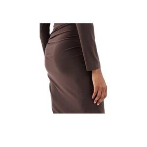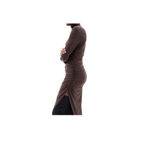 NORMA KAMALI Brown Ruched Asymmetrical Dress Size Small NEW