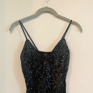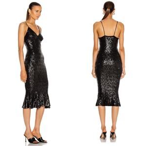 Norma Kamali Midi Trumpet Fishtail Overlapping Sequin Slip Dress Midi Length Black 2XS XXS 32 S4