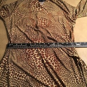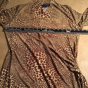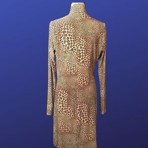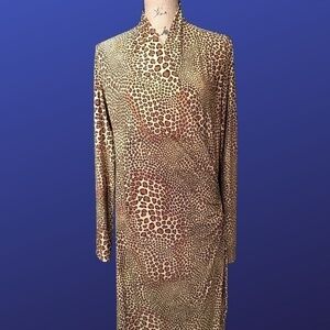 NWOT NORMA KAMALI Jersey FAUX WRAP/Surplice Sheath Dress, LONG SLEEVE, GOLD Animal Print, Women’s Size L. Check measurements for accurate fit.