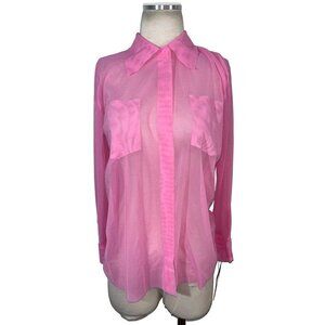 NORMA KAMALI Nk Shirt in Candy Pink Medium New Womens Sheer Blouse Top