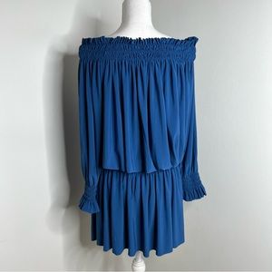 NORMA KAMALI Peasant Mini Dress in Blue Size S