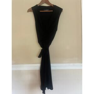 NORMA KAMALI Waist Tie Ruched Midi Dress STRETCHY Size XXL LBD Black COCKTAIL