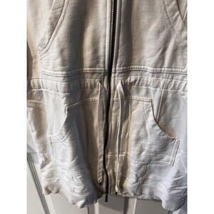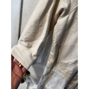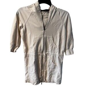 NORMA KAMALI Ivory Full Zip Cotton Blend Drawstring Half Sleeve Hoodie sz Small. Pit to pit measures approx 19 Shoulder to hem measures approx 32 85% cotton 15% polyester
