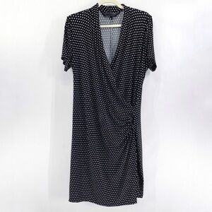 NORMA Kamali Black Polka Dot Faux Wrap Stretch Jersey Dress