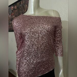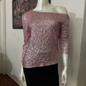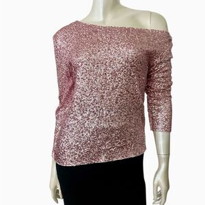 NORMA KAMALI SEQUINED OFF-SHOULDER TOP IN METALLIC ROSE
