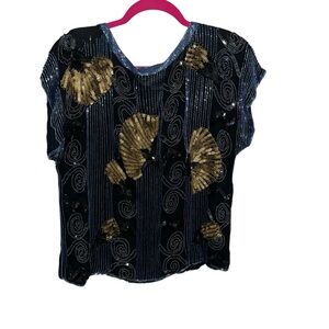 NORMAN BERG beaded sequins evening top shirt vintage retro medium M