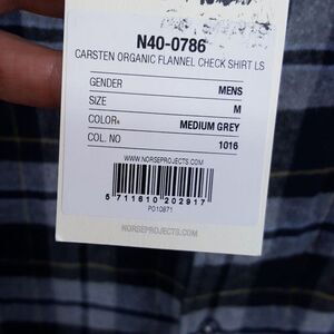 NORSE PROJECTS Shirt Mens Medium Gray Check Button Up CARSTEN FLANNEL $215