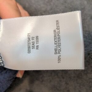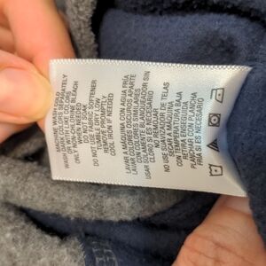 Nordic track half zip pullover size medium. with color block with dark gray and navy blue. it does have a broken zipper handle but the zipper works just fine. it's soft and cozy.