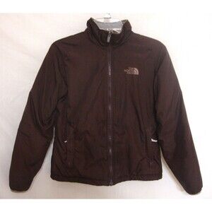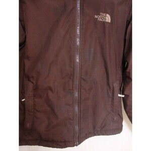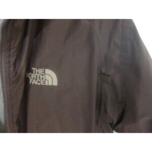 The North Face women's brown ski jacket with cozy lining, zip front, fitted, high collar. 2 front zipper pockets and adjustable drawstring waist. Great snowboard or general winter jacket if you don't ski. Tag Size Small. Measurements: chest 40", waist 36", sleeve 23", length 23". Well Loved Condition with Lots of Life Left! Front shows some faint stains, some minor surface wear along edges and a small 1/2" rip on the left shoulder (see pics). Smoke Free Home.