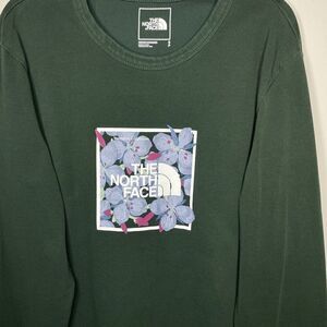 NORTH FACE Shirt Mens Small S Floral Logo Long Sleeve Dark Green