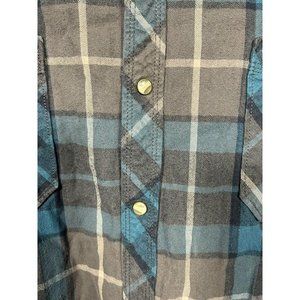 NORTH RIVER MEN LONG SLEEVE BUTTON UP Blue Grey PLAID SHIRT Pearl SNAPS XXL 2xl
