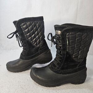 NORTHFACE Snow Boots Black Sz 8.5 Thermoball Leather Lace Up Winter