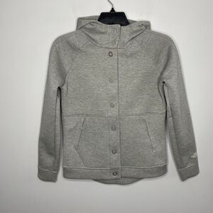 NORTH FACE Womens Neo Thermal Snap Hoodie Jacket EUC Heather Gray Knit Small S