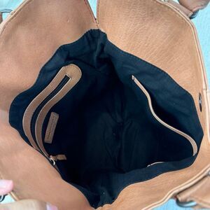 The interior is lined with fabric and has enough space for all your essentials. The bag is pre-owned, but has been well maintained and is in excellent condition.
