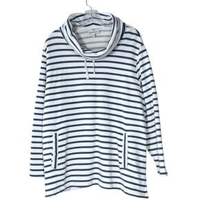 NORTHSTYLE Navy Blue Stripe Cowlneck Pullover Sweatshirt Top Women's Size 1X