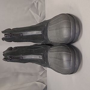 These Nortiv8 snow boots have a zip closure, are rubber on the outside with 3M thinsulate on the inside and they are waterproof and slip resistant. New, Never worn.
