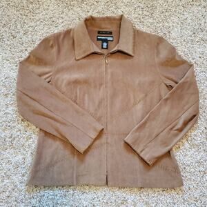 Norton McNaughton Petites jacket. Tan color. Size 8P. Full zip. Gently used condition with no rips or stains.