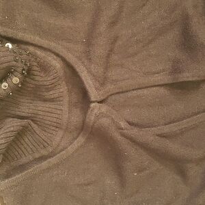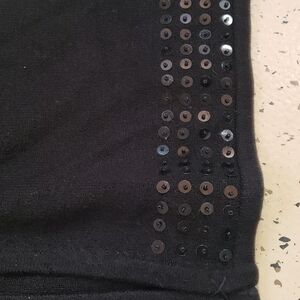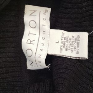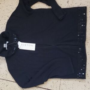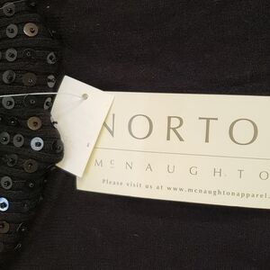 Norton McNaughton sweater women's size large NWT cowl neck sequin neck and hem. lovely special occasion sweater gives appearance of sweater cardigan pair but is only one piece. beautiful black bead and sequin embellishments at front hem and around cowl neck. faux cardigan hooks at neck stitched in 2 places as new but could be opened